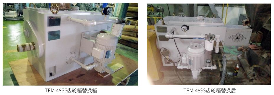 我公司為某日企量身定制的TEM-48SS替換齒輪箱,新齒輪箱比原廠家的齒輪箱穩(wěn)定性更高、壽命更長。