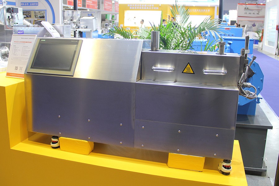 下圖所示的16雙螺桿擠出試驗機,使用了我公司設(shè)計生產(chǎn)的小型非標(biāo)雙螺桿齒輪箱,中心距為13.8mm。